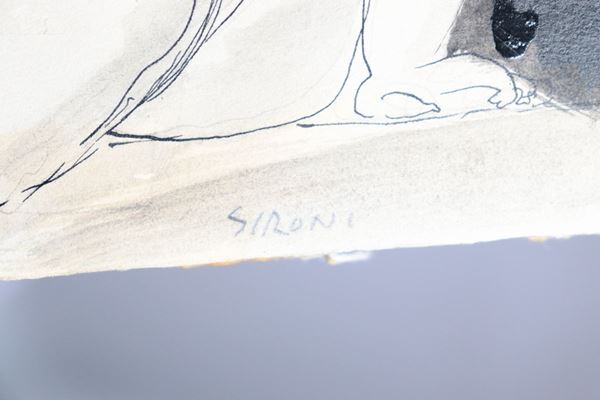 "Fantastic subject" drawing in ink and watercolor on canvas