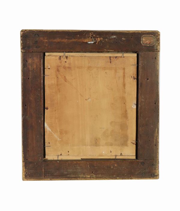 oval-shaped in an ancient gilded and carved wooden frame, 22 x 19 cm.