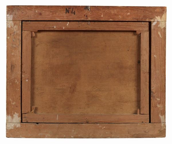 of exquisite pictorial execution and brilliance of colors, gilded and carved wooden frame, 59 x 77 cm.