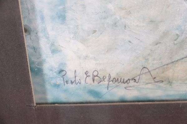 Pen and white lead drawing on "Peasant Face" paper. Signed