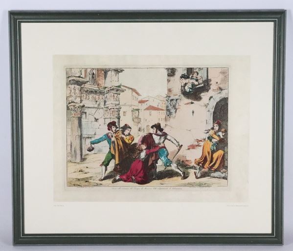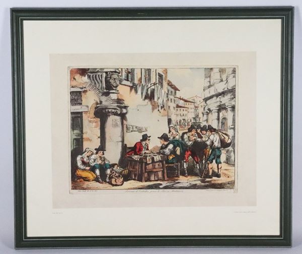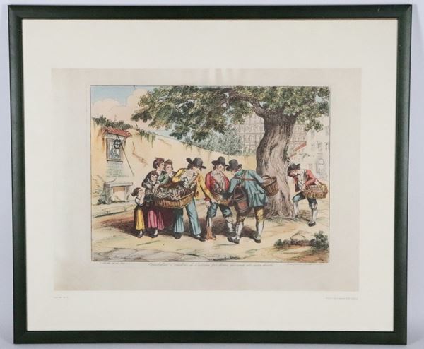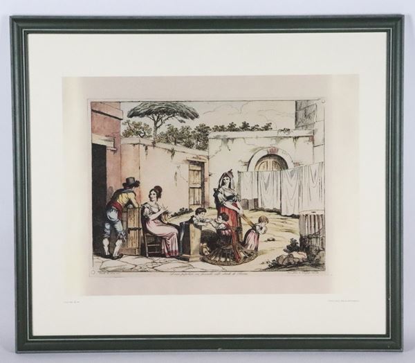 Lot of four colored prints "Popular Roman Scenes Pinelliane"