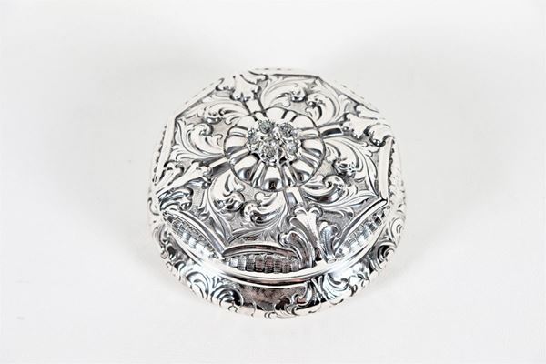 entirely chiseled and embossed with floral volutes, diameter 14.5 x 9 h.