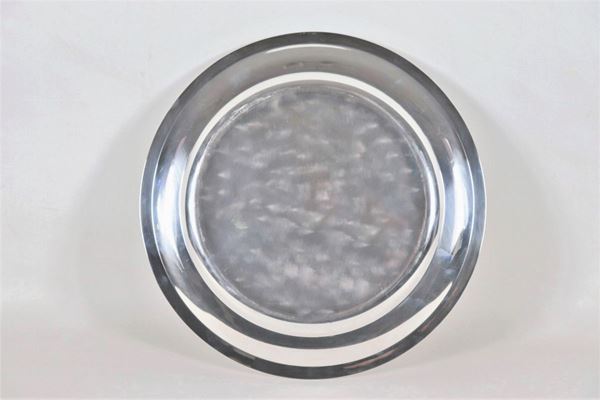Large round plate in smooth silver gr. 740