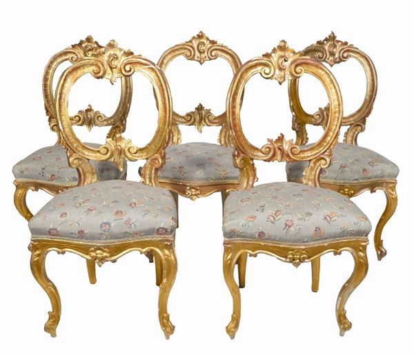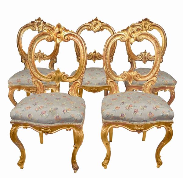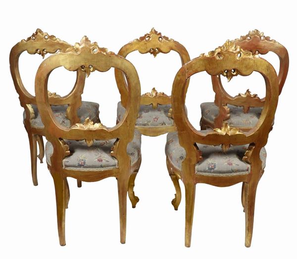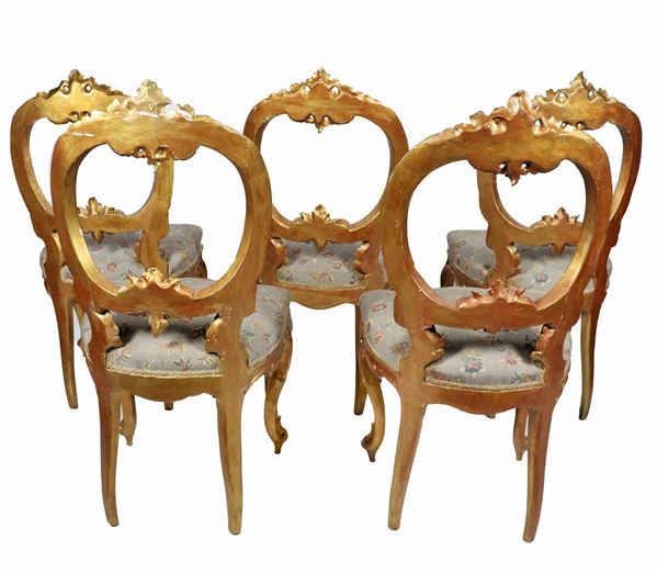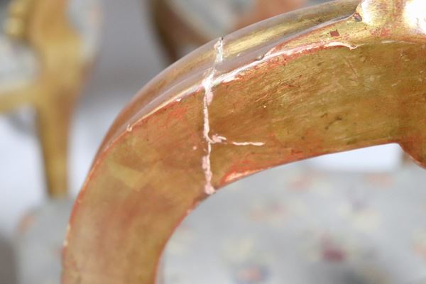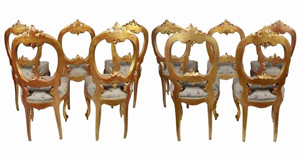 Lot of ten Neapolitan Louis Philippe chairs in gilded wood