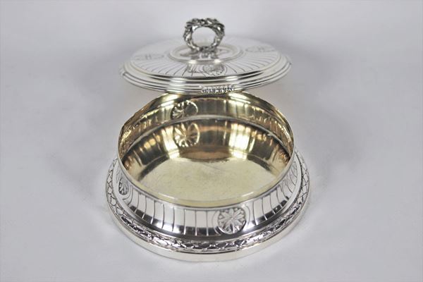 chiseled and embossed with Louis XVI motifs, diameter 15 x 8 h. 440 g.