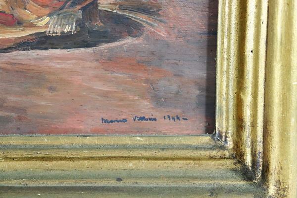 Signed and dated 1944. "The herring" small oil painting on tablet