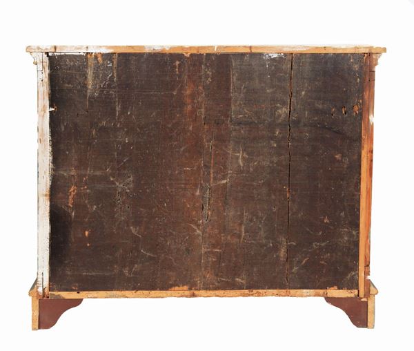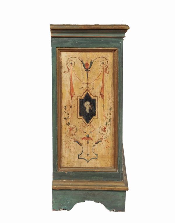 Ancient Marche sideboard in green and ivory lacquered wood with painted decorations with neoclassical motifs