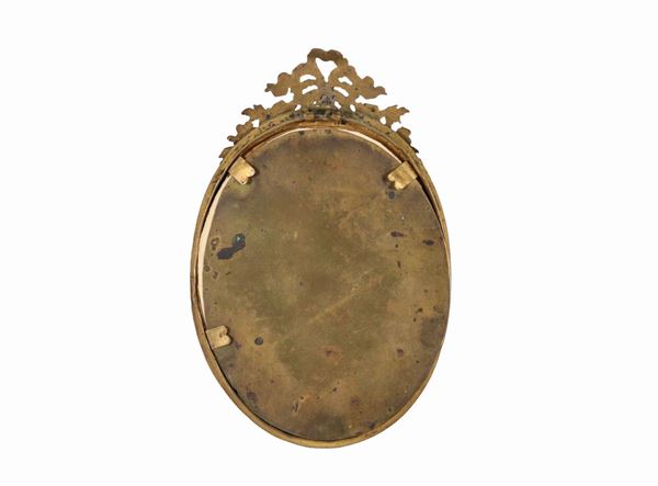 Ancient small miniature with oval mold "Dama" in a frame in gilded and chiseled bronze