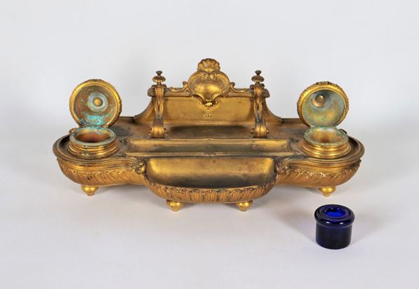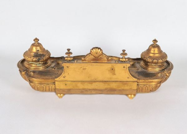 Antique French inkwell in gilded and chiseled bronze in the shape of a fountain