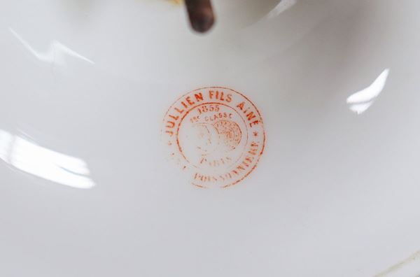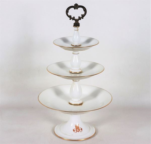 Antique French stand in white porcelain with three floors with monograms and profiles in pure gold