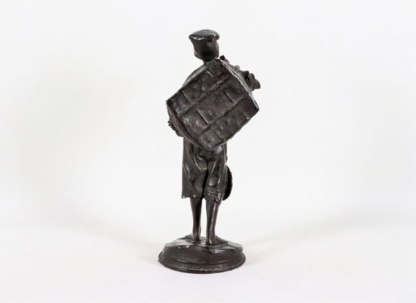 Bronze sculpture "Fisherman with wicker basket". Signed