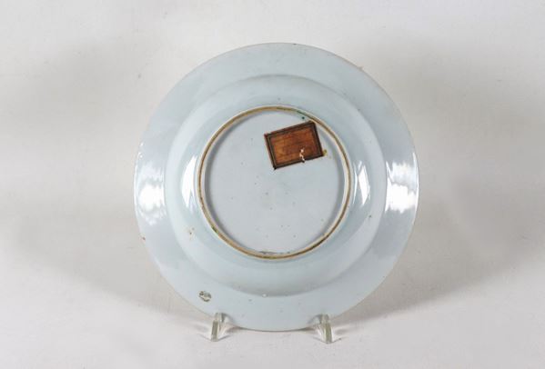 Compagnie delle Indie porcelain plate with relief decorations in polychrome enamels with motifs of oriental flowers and animals