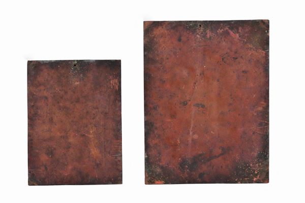 "Crucifixion and Madonna with Child" lot of two small oil paintings on copper very damaged