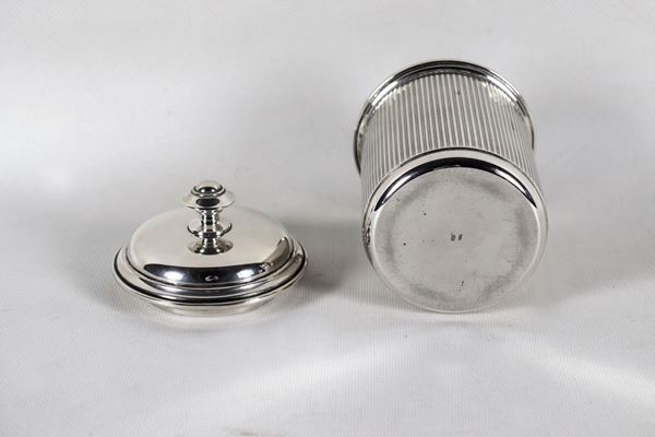 Cylindrical tea box in chiseled silver gr. 320