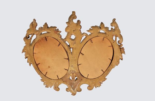 Double picture frame in gilded wood and carved with Louis XV motifs