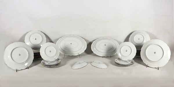 consisting of: 9 bowls, 9 dinner plates, 8 saucers, 2 butter dishes, 2 round serving plates and 2 oval serving plates, one large and one small.