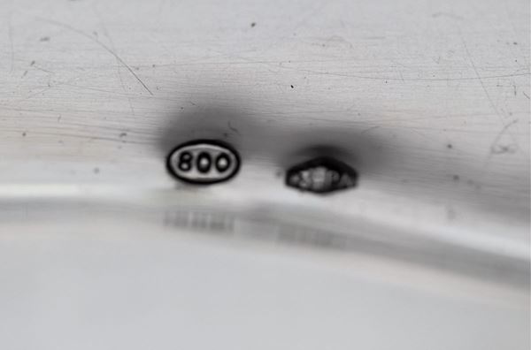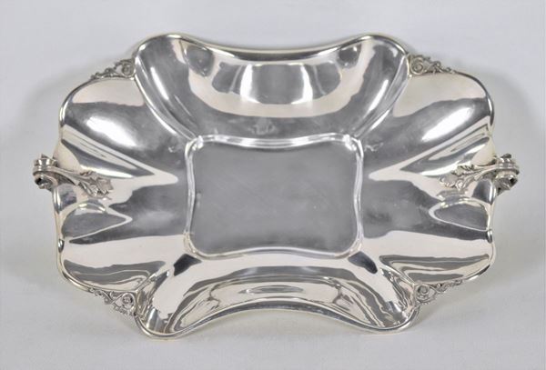 "Handkerchief" centerpiece with embossed and chiseled edges and handles, supported by four curved feet gr. 448