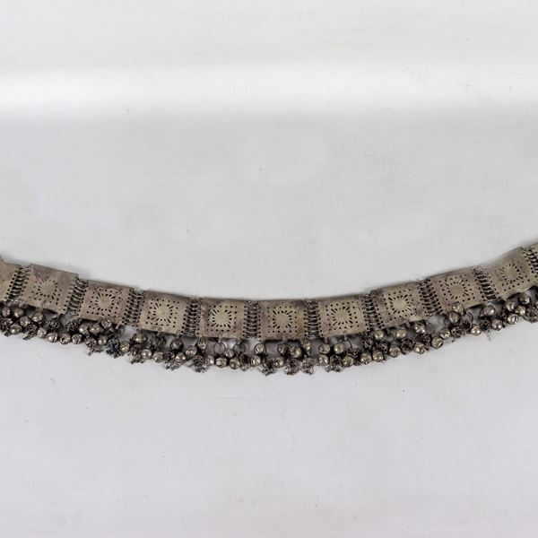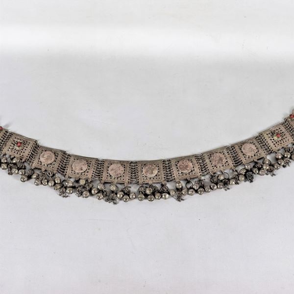 Large ceremony belt, Emirate of Qatar, in silver with applications of coins and rattles of various shapes gr. 600
