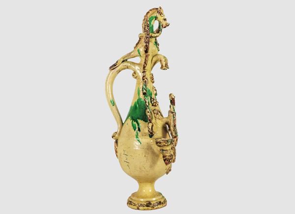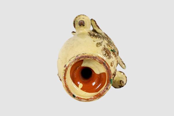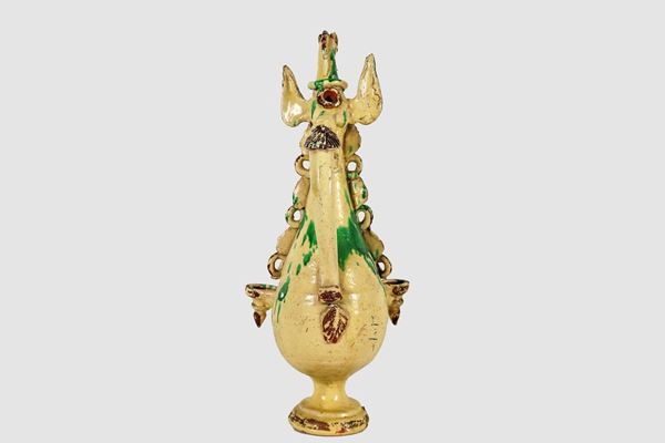 Large handled bottle in glazed majolica from Cerreto in various polychrome colors