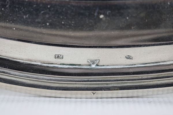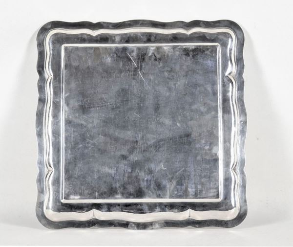 Large square tray in 925 Sterling silver with arched edge, supported by four feet gr. 1850