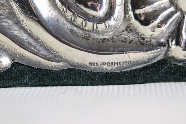 Large table frame in silver title 925 entirely chiseled and embossed with floral scrolls