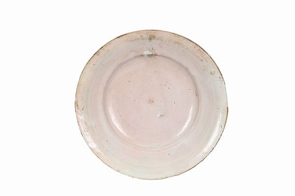 Laterza glazed majolica wall plate with colorful decorations and a lady's face in the center