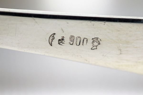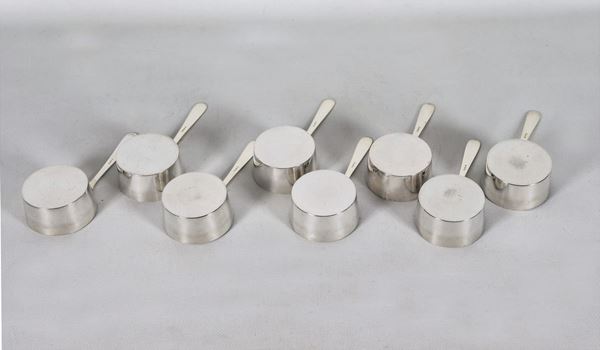 Lot of eight pans in silver title 900 with engraved monogram gr. 500