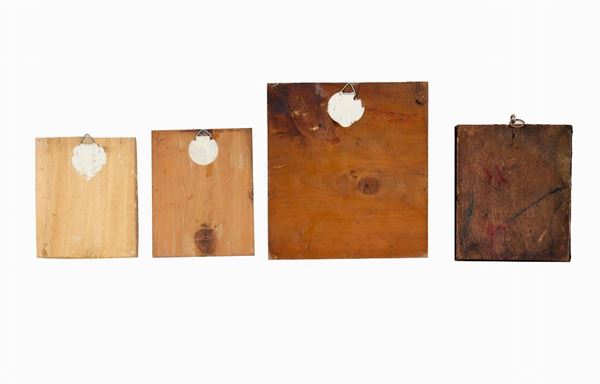 Lot of four small Russian icons "Christ, Madonna with Child and Saints"