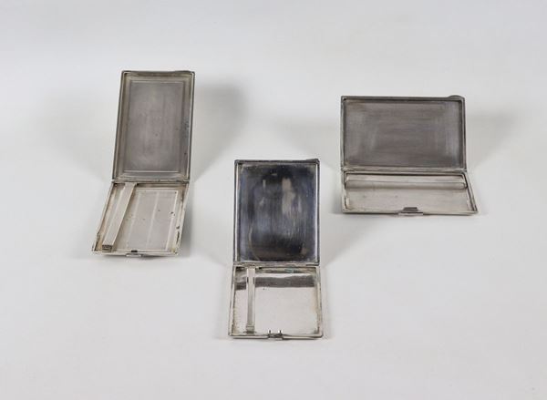 Lot of three cigarette cases in chiseled and embossed silver gr. 390