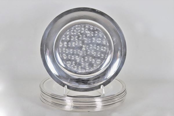 Lot of twelve small silver plates with embossed edges gr. 2750