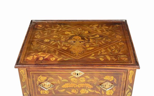 Mahogany cabinet entirely inlaid with floral scroll motifs