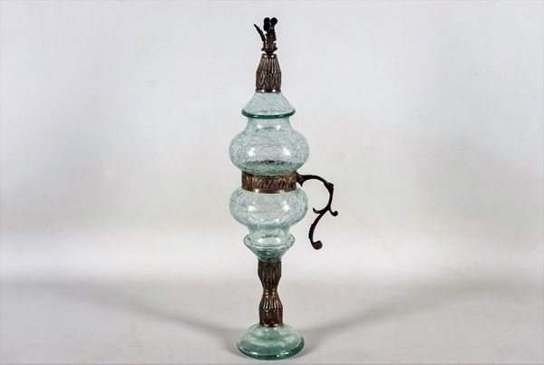 Model of an antique vase in blown glass and embossed silver made by the Tunisian artist and designer Sadika Keskes