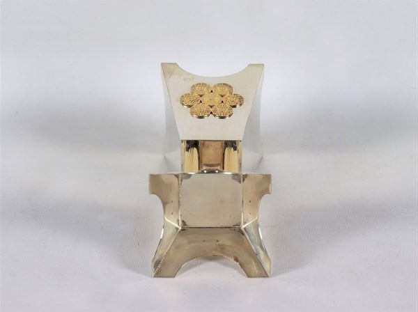Oriental incense holder in silvered and gilded metal with flowered rosettes and coats of arms of the Emirate of Qatar