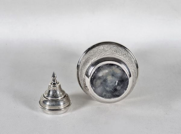 Oriental perfume holder in Egyptian silver chiseled with palm and leaf motifs gr. 290
