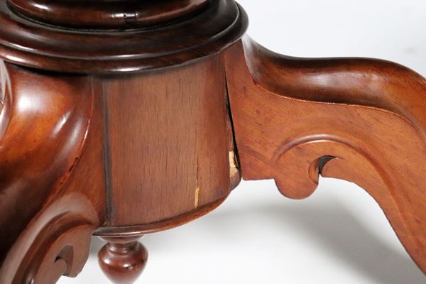 supported by a turned base with three curved legs, 102 x 69 x 60 h.