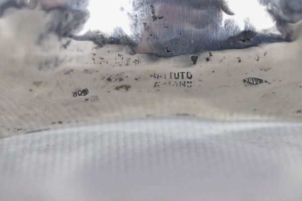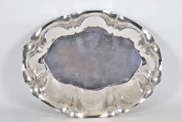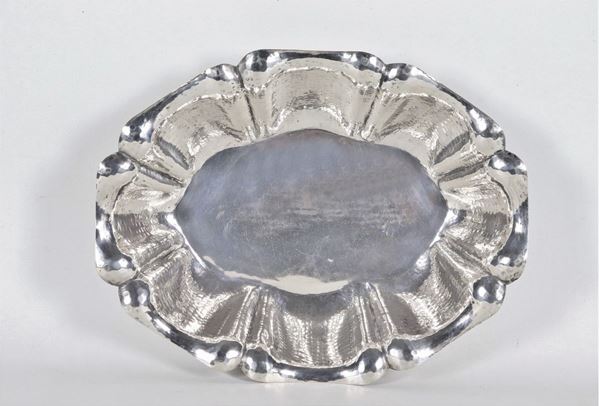 Oval fruit bowl in hammered silver with arched edge gr. 500