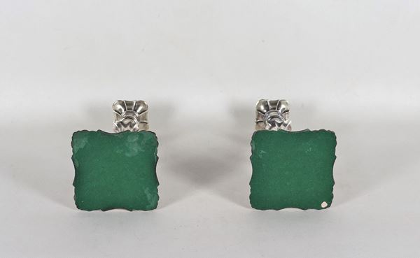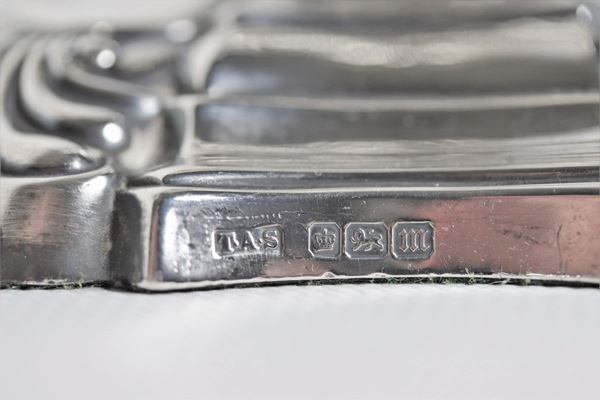 Pair of silver candlesticks, George V period, chiseled and embossed with palmette motifs gr. About 600