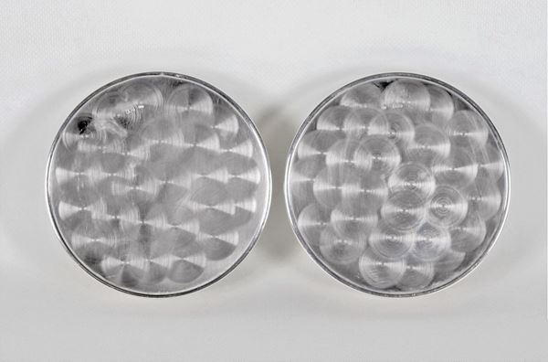 Pair of silver coasters with chiseled, embossed and perforated edges gr. 260