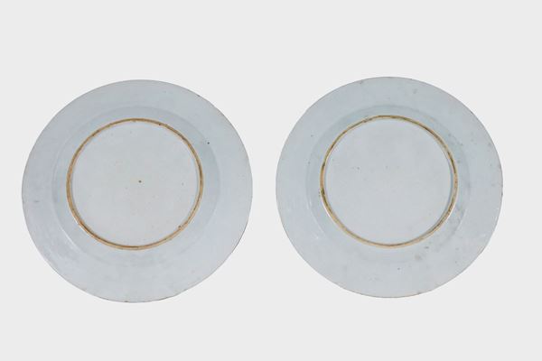 with polychrome decorations with garlands and floral intertwining. Diameter 23 cm each.
