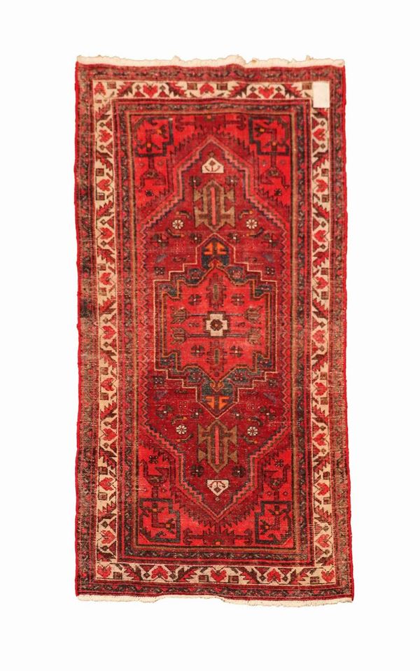 Persian Shirvan carpet with geometric motifs and flowers on a red background 2.02 x 1.00 m