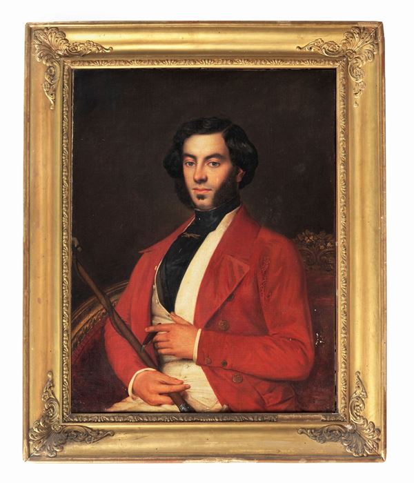 "Portrait of a nobleman with cigar and whip" oil painting on canvas of excellent pictorial execution