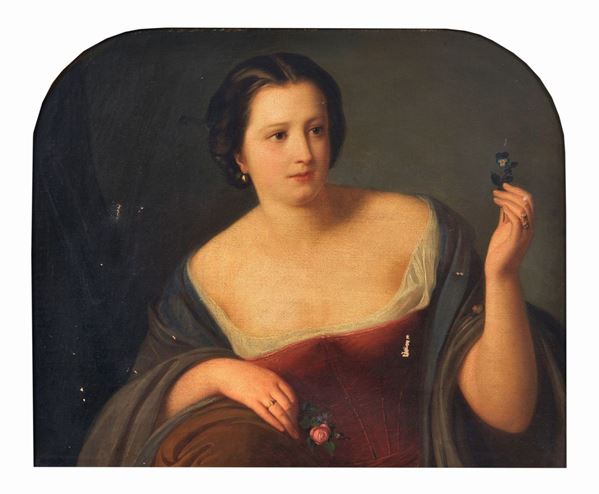 "Portrait of a young noblewoman with a rose" oil painting on canvas of fine pictorial quality