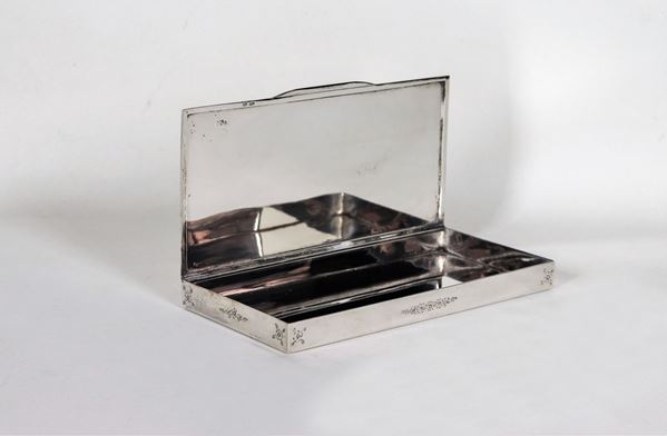 Rectangular cigarette case in chiseled and embossed silver gr. 380