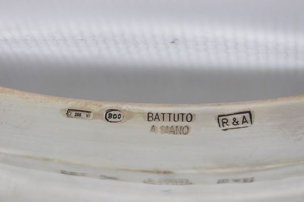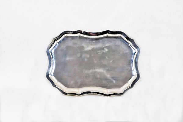 Rectangular silver mail tray with embossed and arched edge gr. 390