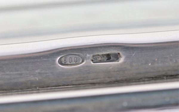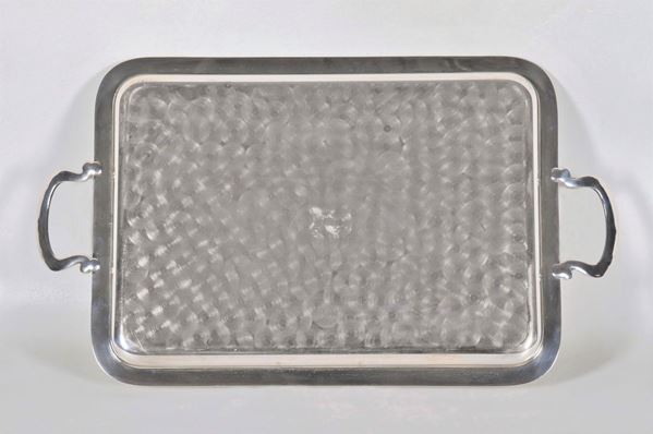 Rectangular silver tray with two handles and embossed edge gr. 1180