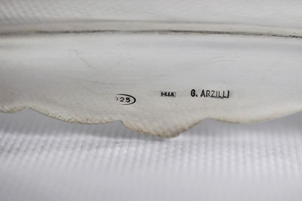 Rectangular tray mail holder in silver title 925 with chiseled and embossed edge with scrolls and shells, on the bottom in the center of the [..]