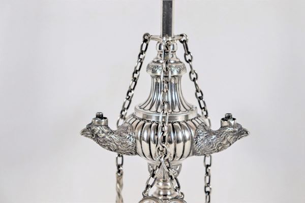 Roman oil lamp in chiseled and embossed silver with Empire motifs gr. 780