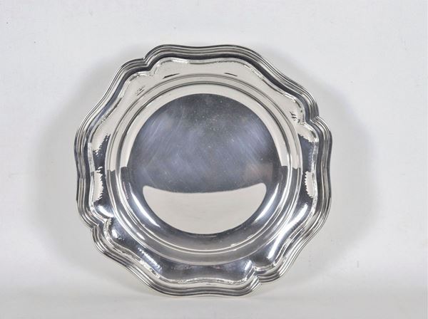 Round silver fruit bowl with ribbed edge, hand beaten gr. 700