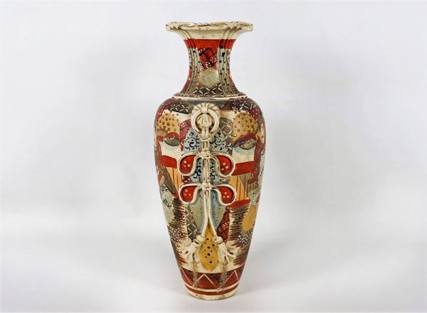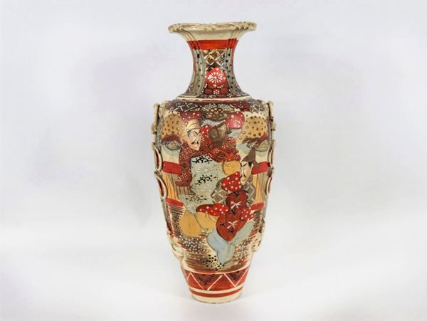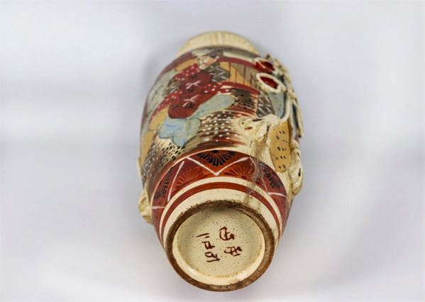 Satsuma porcelain vase decorated with polychrome enamels in relief with motifs of "Oriental theatrical scenes"