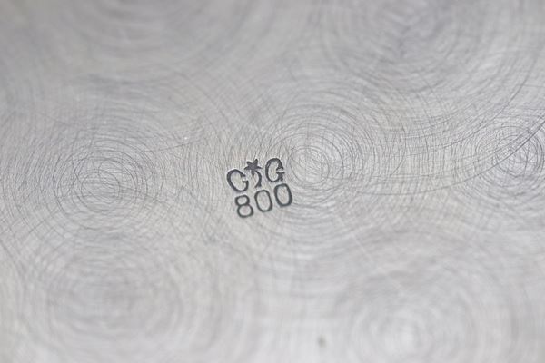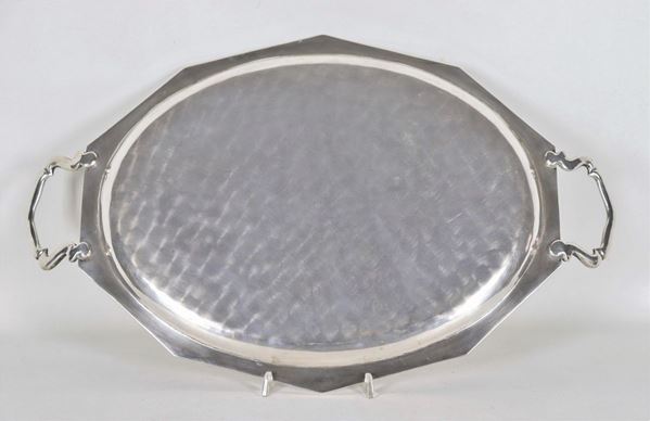 Shaped oval-shaped silver tray with two handles gr. 1290